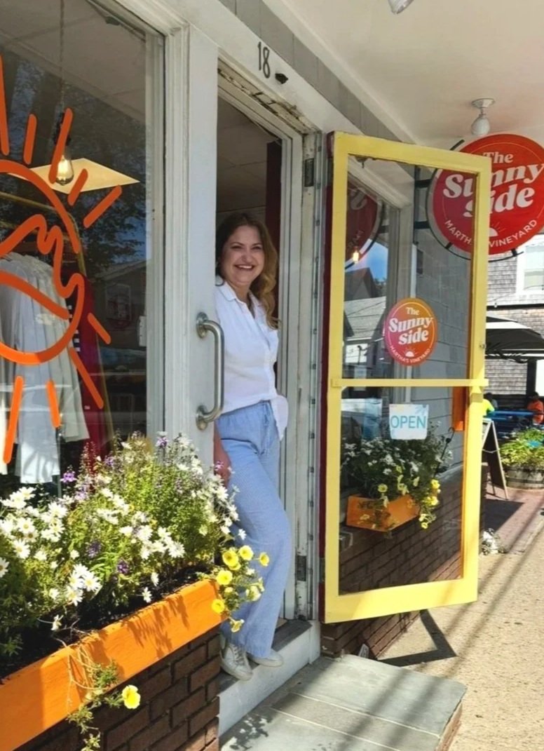 In addition to making a perfect espresso martini, Madison is the owner of The Sunny Side in Vineyard Haven, a size-inclusive boutique built on the belief that style should feel joyful, accessible, and made for every body.